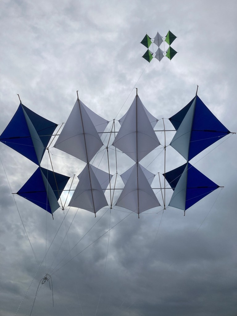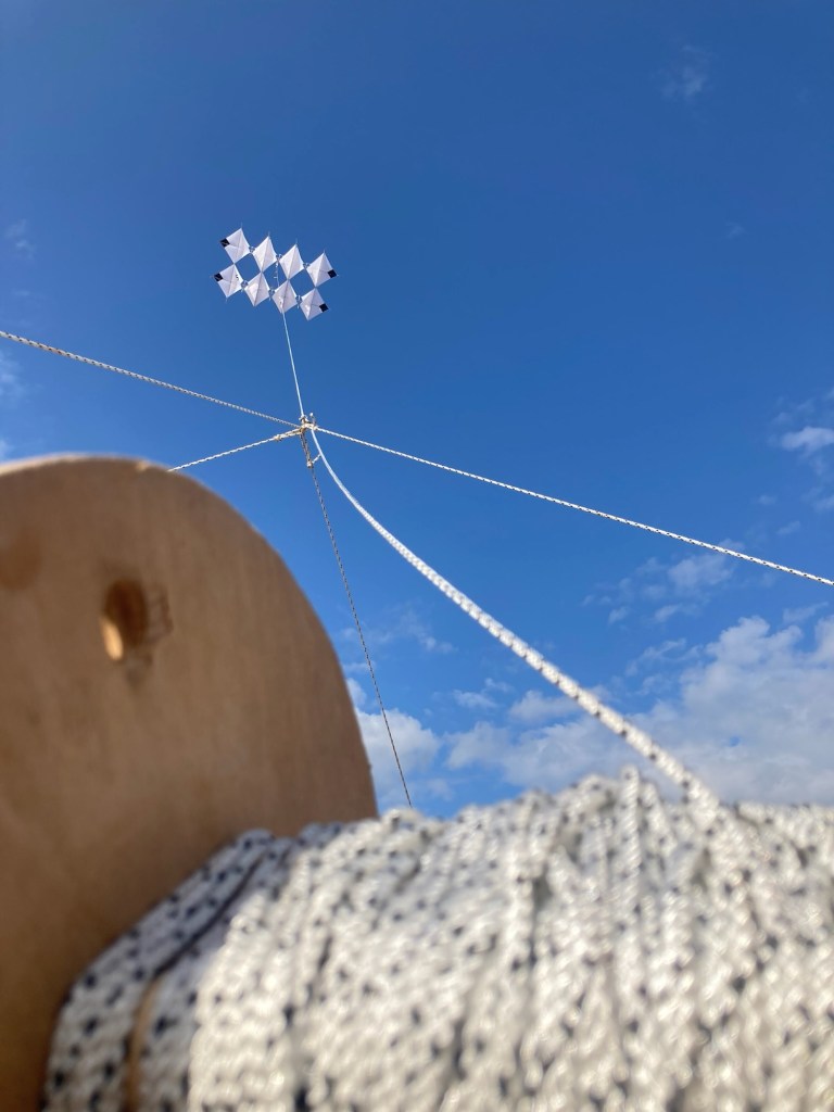 Crashes do happen, and over time I’ve learned its best to be sanguine about them. The moments before and during take off or landing are ones of extreme vulnerability for the kites structure. If they roll, the point loading can be so great that breakages are likely, particularly with the old hardwood dowels. So keeping control of all the things and being methodical is really, really important, and of course safety of both operators and bystanders is absolutely paramount. Flying is great, as long as you stay away from the edges.